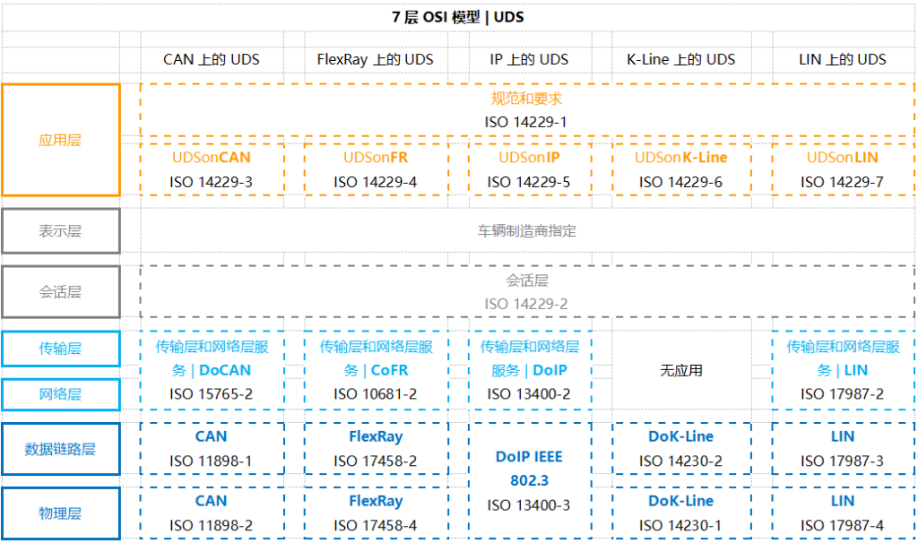 而UDS则在楼层更高一些的位置,具体来说,它涵盖了会话层和应用层。会话层就像是保证我们发送的信息能按顺序且完整地到达,而应用层则更进一步,直接处理诊断信息,确保车辆的系统能理解和使用这些数据。