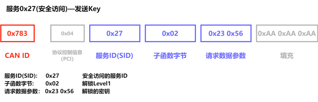 进行安全认证:安全访问服务(SID=0x27)确保只有授权的工具才能进行写操作或其他敏感操作。这通常包括一个请求和响应的过程,防止未授权访问。